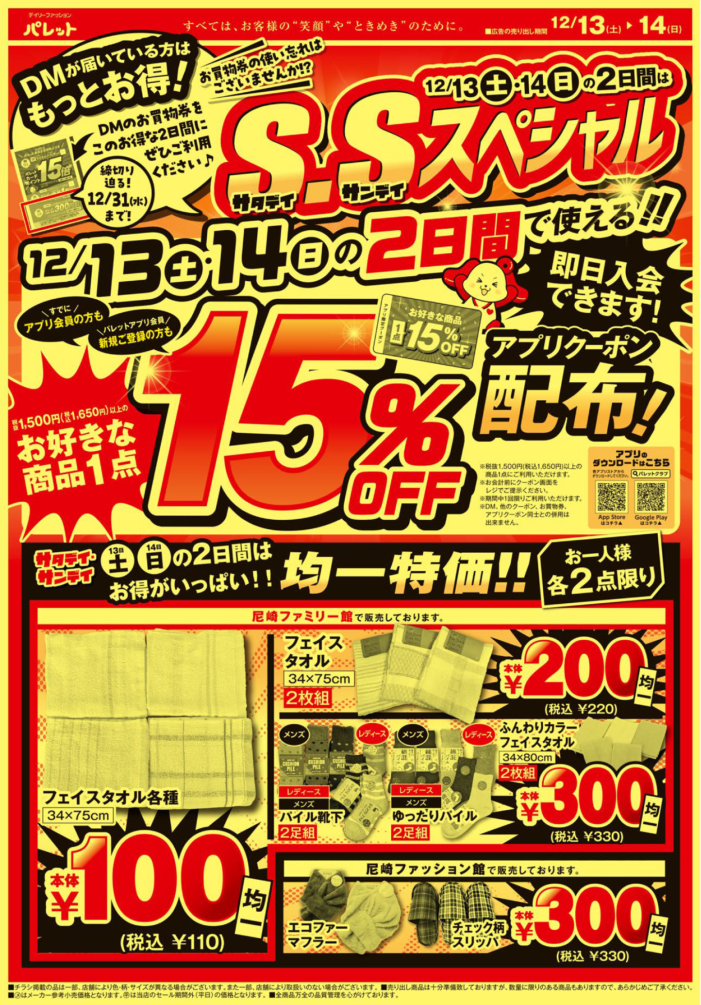 さらに!期間中、税抜1,500円以上の商品1点が【15%OFF】!